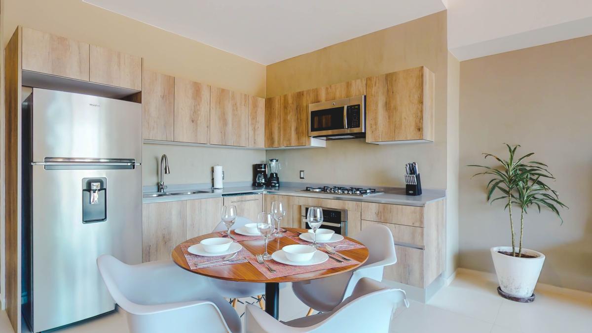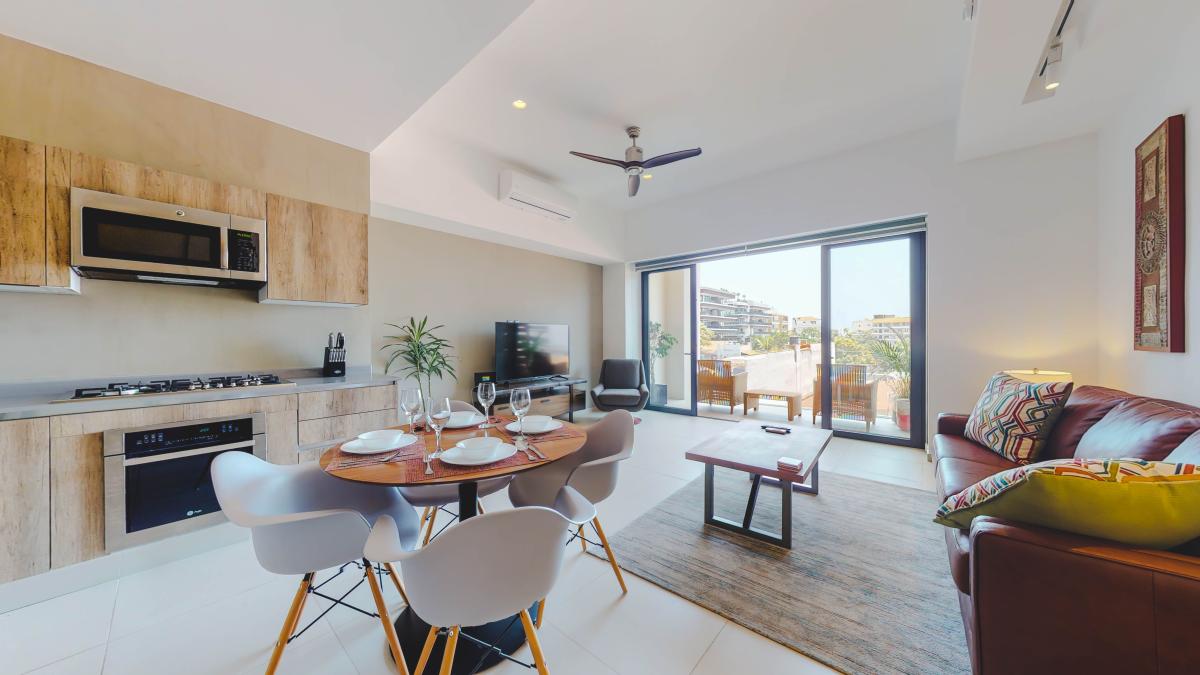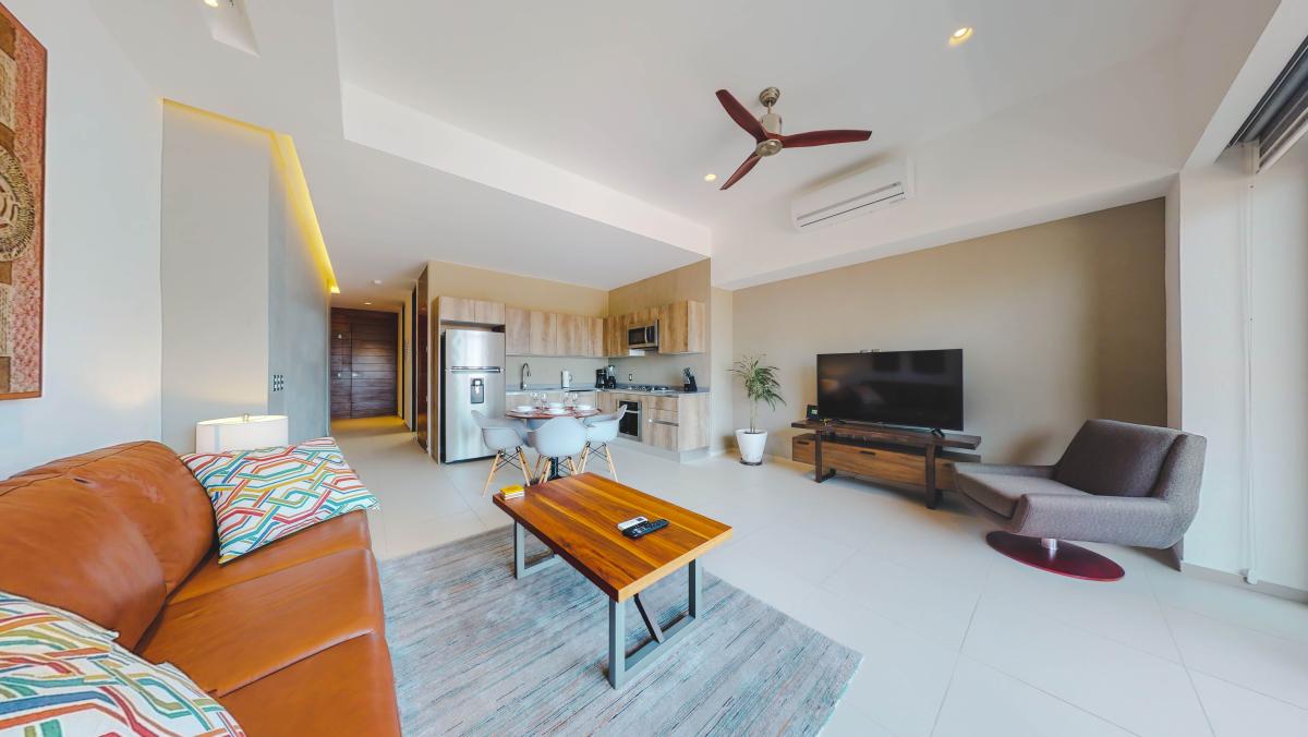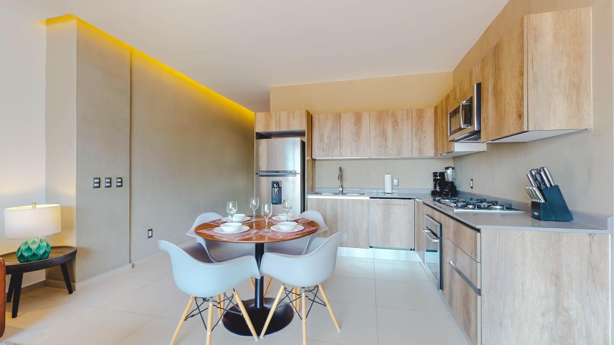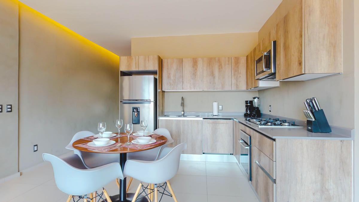 La unidad 402 es una unidad de un dormitorio y baño completo, equipada con aire acondicionado. La unidad lo invita a relajarse y disfrutar el mejor momento en Vallarta. Una cocina totalmente equipada, una cama tamaño queen en el dormitorio, una sala de lavandería con lavadora y secadora, conectividad wi-fi y televisores inteligentes donde puede ver sus series favoritas con su cuenta personal de Netflix. Todo lo que pueda necesitar para unas vacaciones perfectas está en un solo lugar.