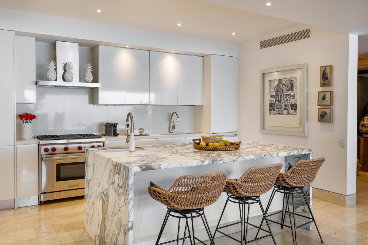 Spacious, elegant, and filled with natural light, this luxurious three-bedroom residence seamlessly combines indoor and outdoor living through floor-to-ceiling glass walls that open to sweeping views of the Pacific.