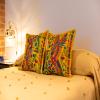 The second bedroom offers the same level of comfort and style, featuring a full-size bed, contemporary design, and details that preserve the historic character of the building, creating a cozy and functional space. It also includes a private full bathroom with a modern shower, quality finishes.