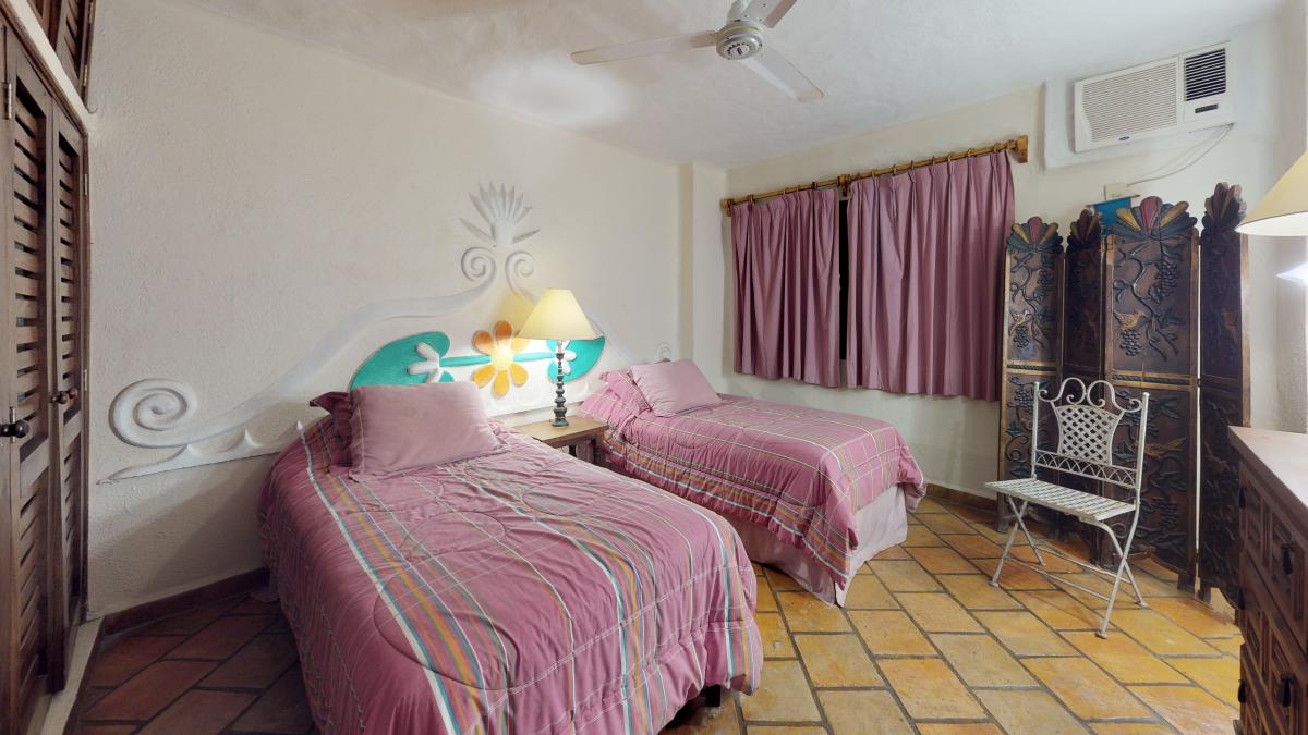 This condo features 2 air conditioned bedrooms and 2 full private bathrooms with a common area of the living room, large dining area and a fully equipped kitchen including a refrigerator, stovetop burners, oven, microwave, coffee maker, cooking utensils and a blender,. There are sliding glass door that open onto a private terrace off the living room with a view of Los Muertos Beach. The artwork is gorgeous and the furnishings represent true Mexican craftmanship. These gated community condos are handicap accessible. There is an elevator and a walkway to the beach located on the first floor.
