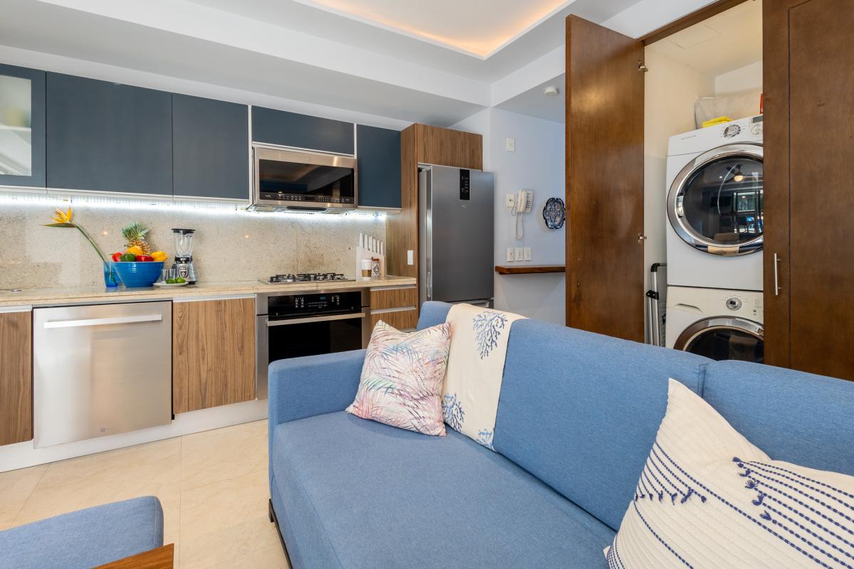 Unit 101 has been recently updated and is in pristine condition with a beautiful outdoor terrace and custom Parota wood furnishings. From the first moment you walk in the door there is a welcoming feeling with bright colors and open concept.