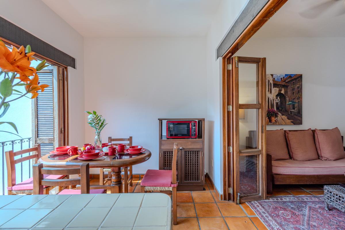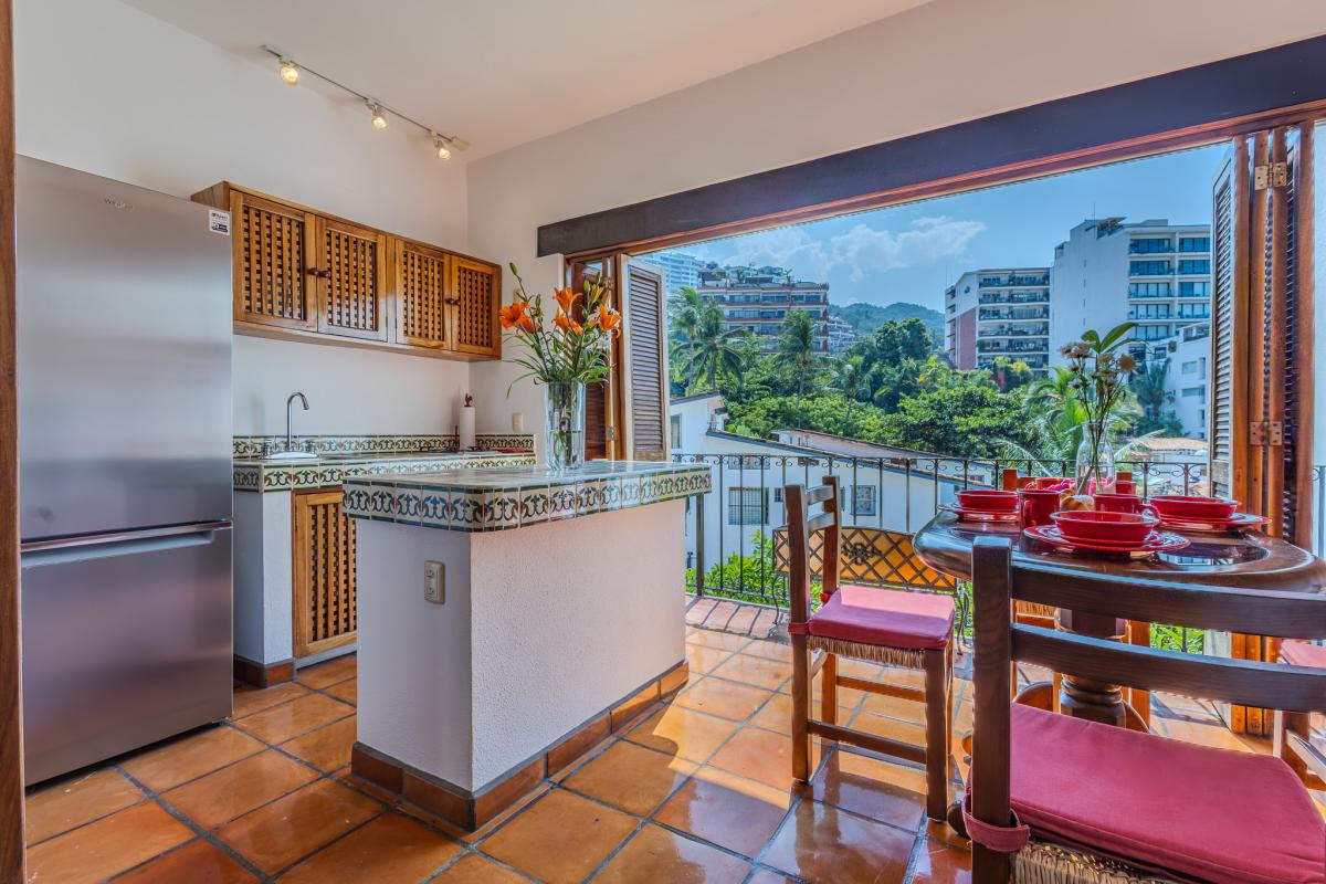 Welcome to Safari 9, a charming studio located in the exclusive Selva Romántica complex, a peaceful oasis right in the heart of Puerto Vallarta’s Romantic Zone. Its location is unbeatable: just one block from the vibrant Olas Altas Street, lined with cafés and restaurants, and only two blocks from the famous Los Muertos Beach. Everything you need is within walking distance: beach, nightlife, local shops, art galleries, bars, and some of the best restaurants in town.